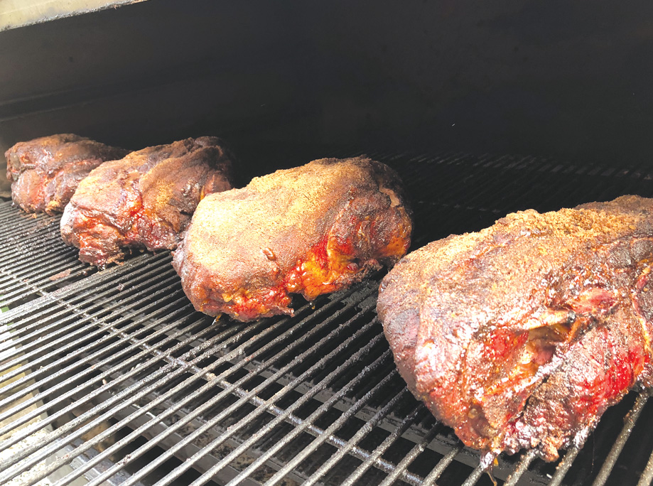 Step into the sweet smoke in the air, fires already going and Food moving. Let the kids head to the top of the pasture to the game. Adults settle in, and eat to your hearts content.